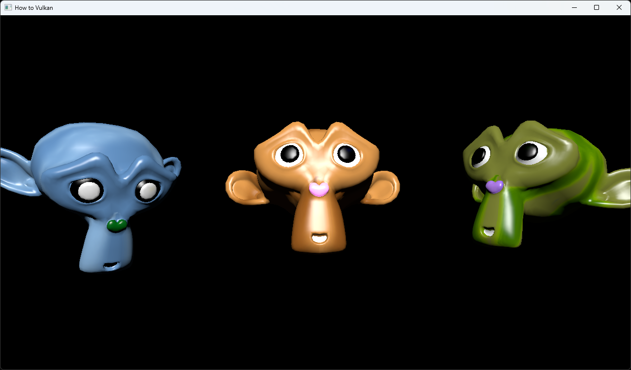 We focus on rasterization, other parts of Vulkan like compute or raytracing are not covered. At the end of this we'll have multiple illuminated and textured 3D objects on screen that can be rotated using the mouse (screenshot). Source comes in a single file with a few hundred lines of code, no abstractions, hard to read modern C++ language constructs or object-oriented shenanigans. I believe that being able to follow source code from top to bottom without having to go through multiple layers of abstractions makes it much easier to follow.